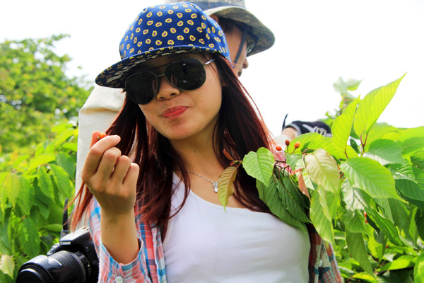 图:来自长沙的户外爱好者在黄袍山采摘樱桃